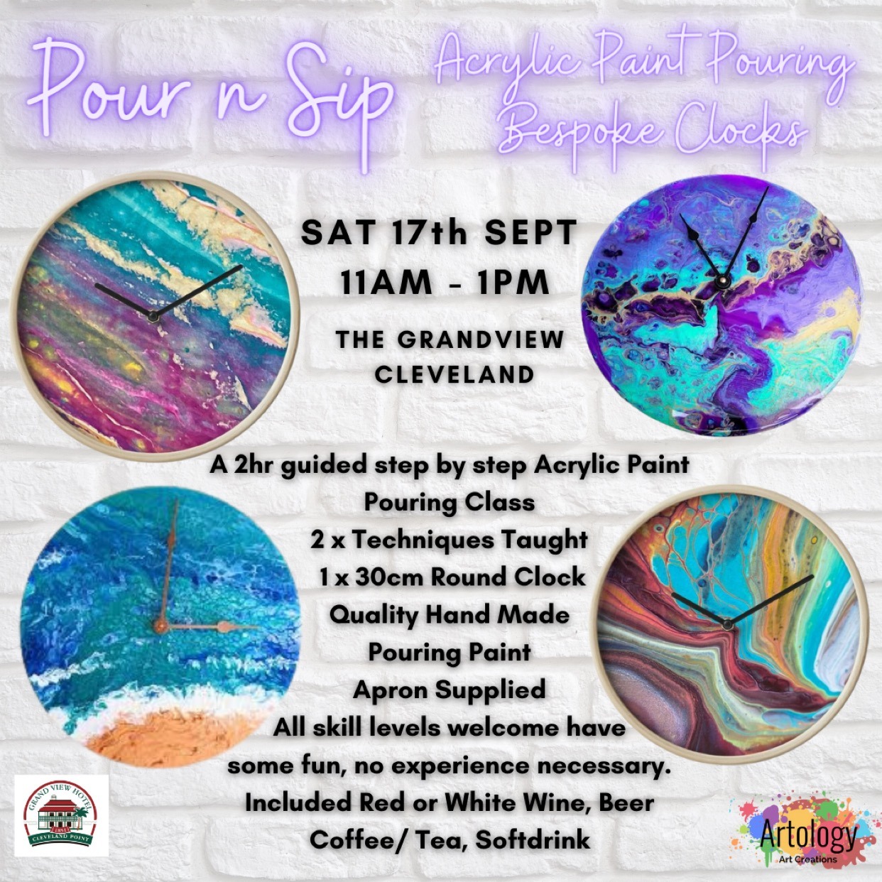 Go With The Flow Paint Pouring Class Clocks Tickets Grand View Hotel Cleveland Trybooking Australia